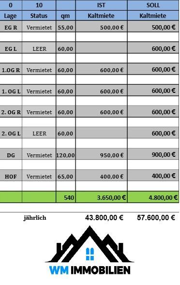 - Mieteinnahmen 200.000€ im Jahr