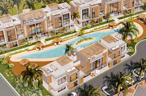 The complex is located just in 2-minutes driving to the beacht, a 30-minutes drive from the city center of Kyrenia, a 40-minutes drive from Ercan Airport and a 5-minutes drive from markets, pharmacy and restaurants. A 7-minutes drive from professional International Golf course.