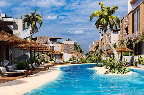 The restaurant in the middle pool will provide residents with a unique dining experience while enjoying the view of the pool.